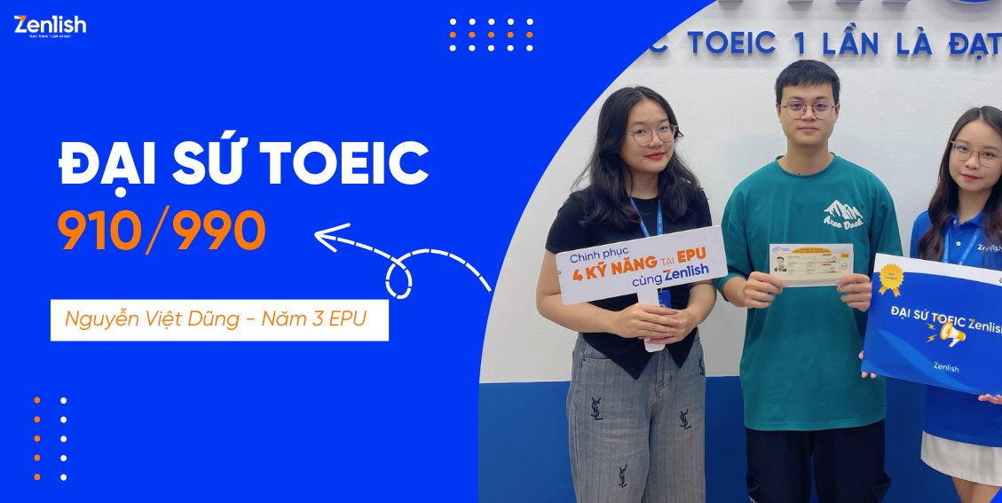 Zenlish chúc mừng Dũng đã chinh phục được mục tiêu của mình, cảm ơn Dũng đã lựa chọn Zenlish làm bạn đồng hành trên con đường cày nát TOEIC của mình. Hy vọng chặng đường học tập của Dũng sắp tới sẽ có những cú hích bùng cháy hơn nữa và vẫn giữ nguyên tinh thần cầu tiến như bây giờ.