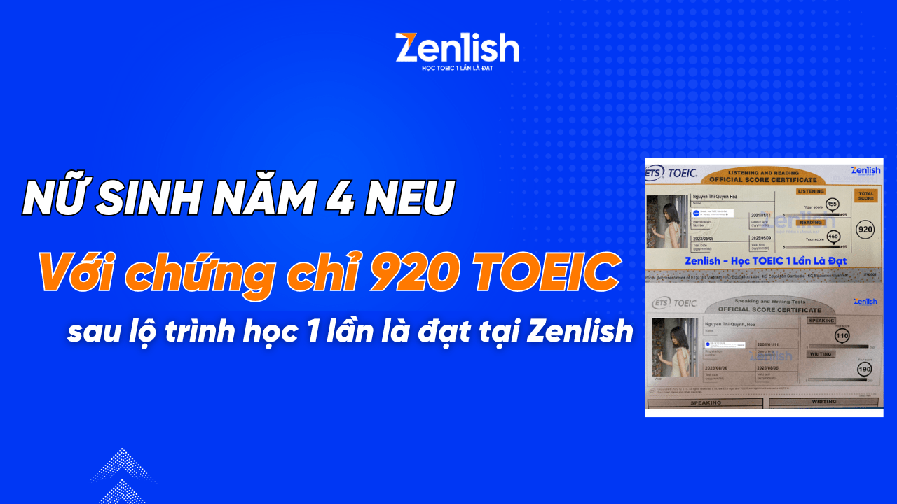 Sau lộ trình học 1 lần là đạt tại Zenlish, Nguyễn Quỳnh Hoa sinh viên năm cuối NEU đã xuất sắc cầm trên tay chứng chỉ 910 TOEIC LR. Vì...