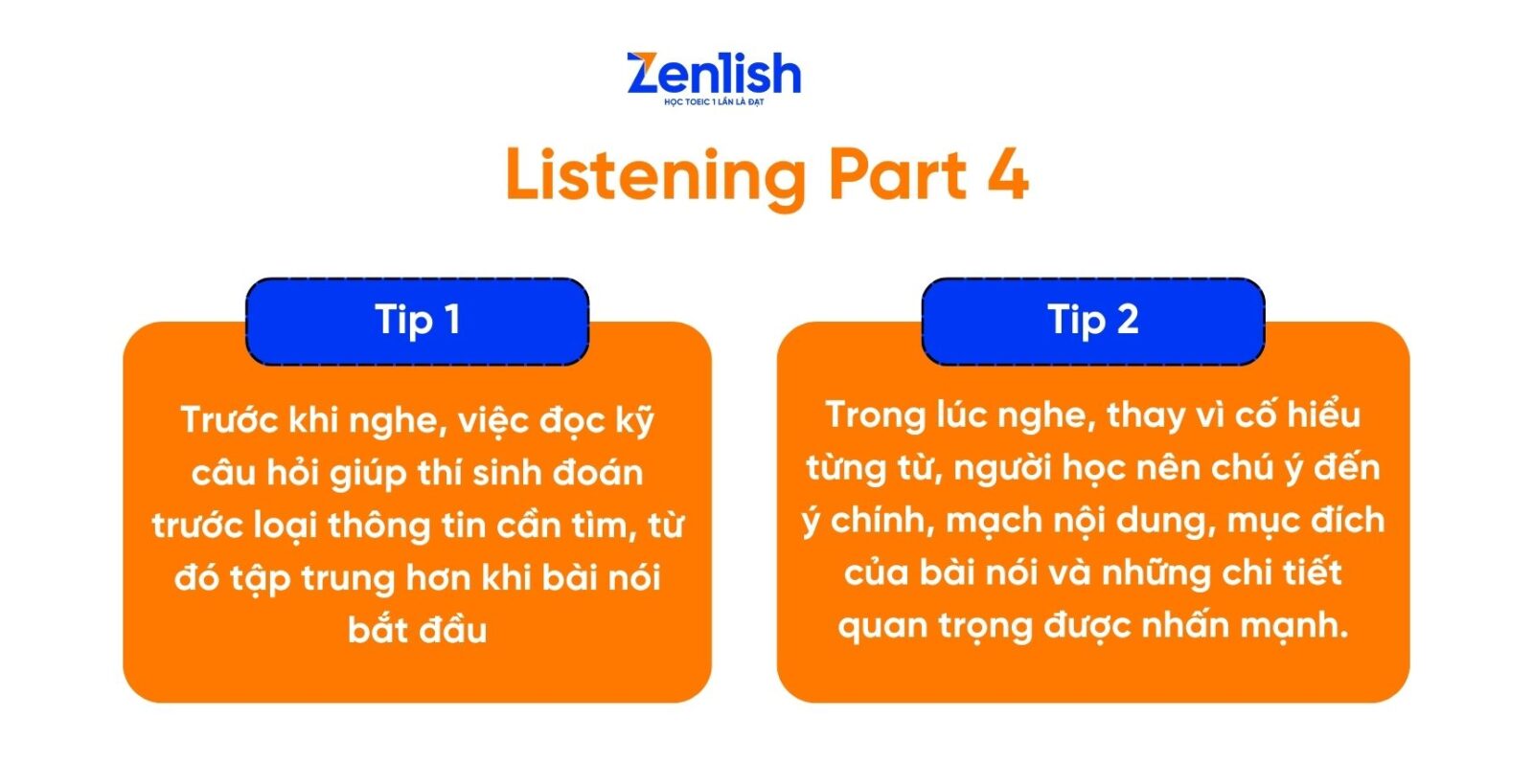Part 4 thường có tốc độ nói nhanh và lượng thông tin nhiều, vì vậy việc luyện kỹ năng ghi nhớ và dự đoán nội dung là rất quan trọng.