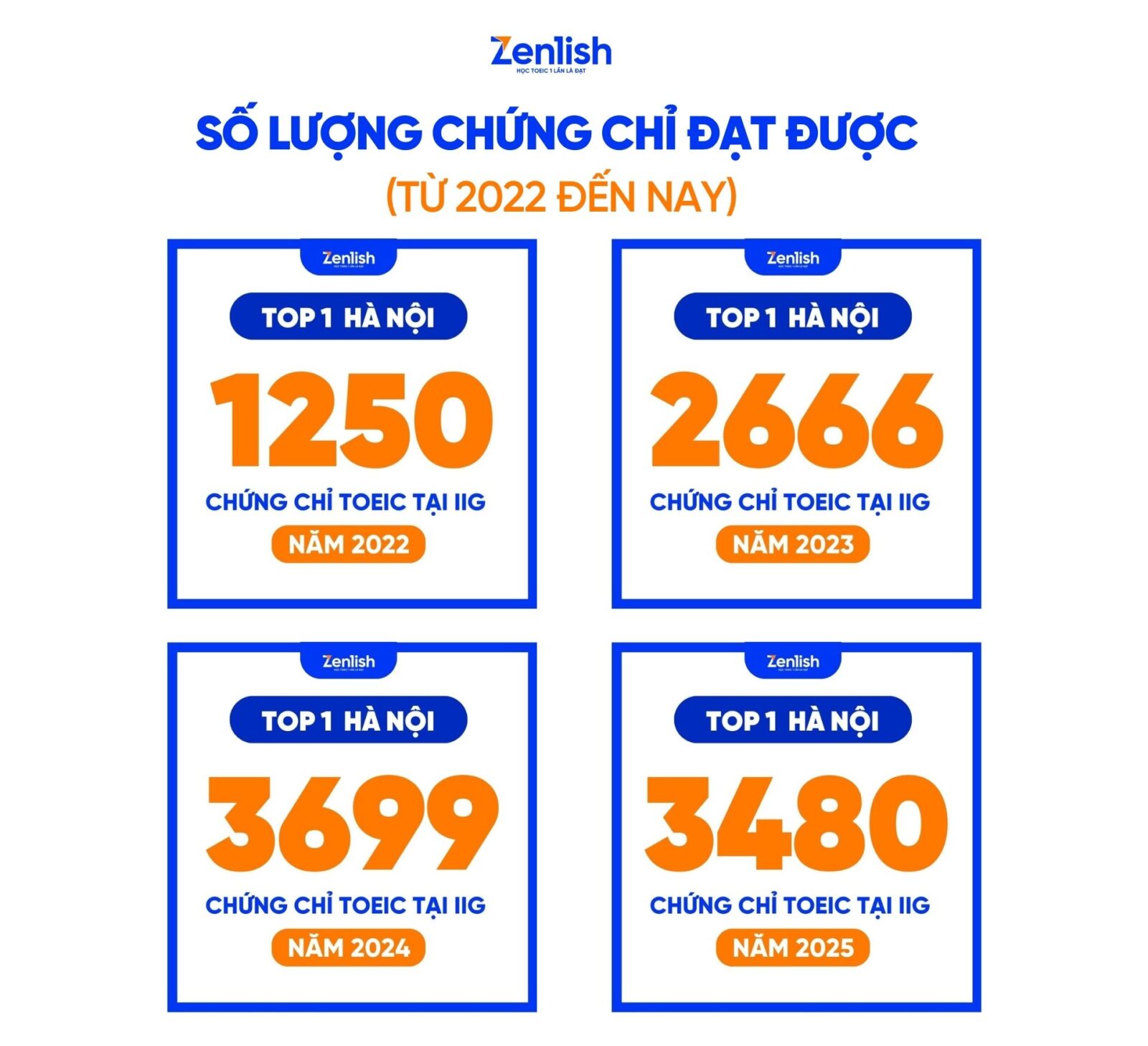 Số lượng chứng chỉ TOEIC tại Zenlish từ 2022 đến nay