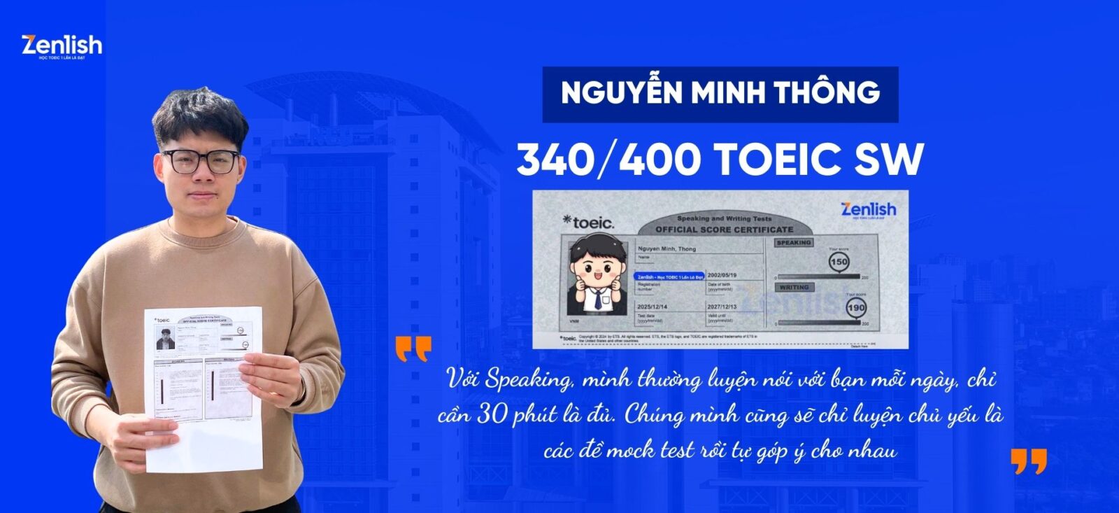 “Nếu bạn hỏi quyết định đúng đắn nhất của mình trong năm 2025 là gì, thì chắc chắn là mình đã học TOEIC Nói – Viết và đạt 340/400.”