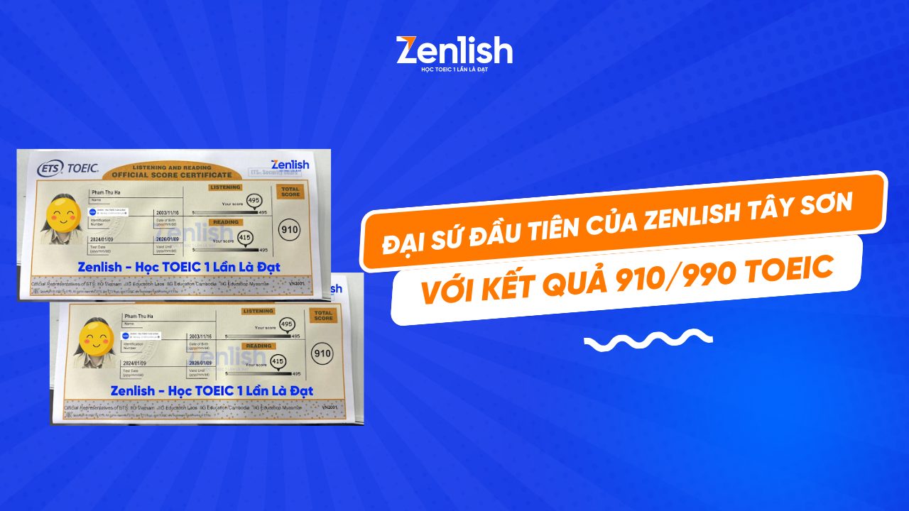 Mở bát năm 2024 cho cơ sở Tây Sơn với thành tích 910 TOEIC chỉ sau 1 khóa học tại Zenlish. Đây là kết quả đáng tự hào mà Thu...
