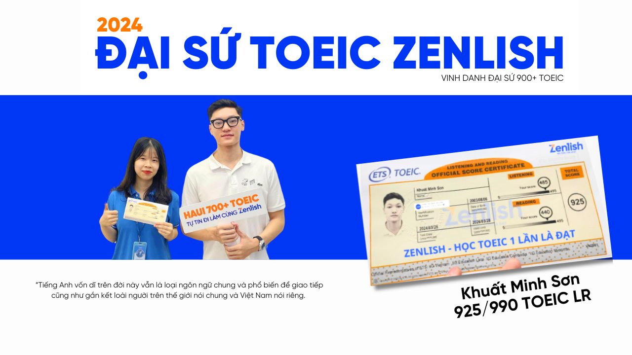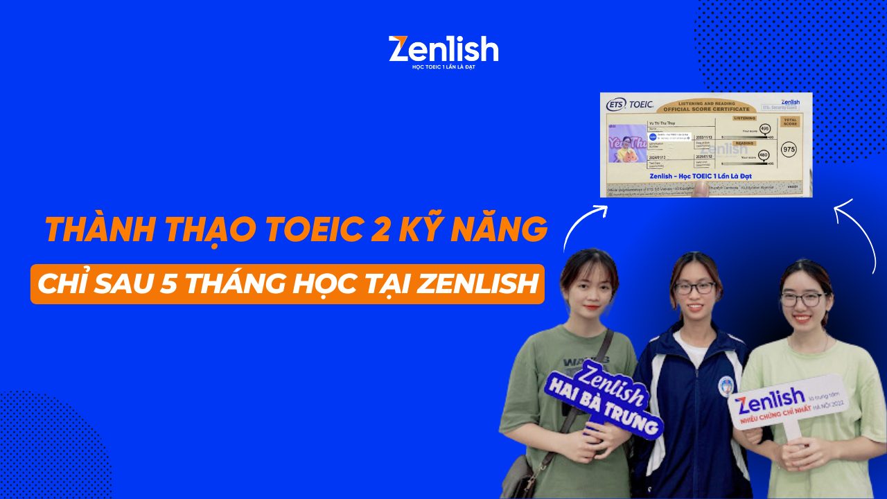 Chỉ sau hơn 5 tháng đồng hành cùng Zenlish, Nguyễn Hồng Hà đã xuất sắc ghi tên mình vào bảng vàng Đại sứ Zenlish với kết quả 950 TOEIC 2...