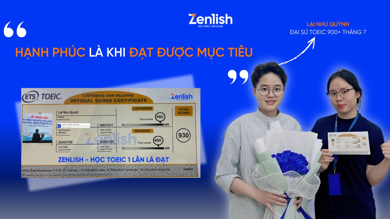 Với sự nỗ lực không ngừng nghỉ, Nguyễn Thị Bích đã đạt được thành tích ấn tượng 920/990 điểm TOEIC chỉ sau 2 tháng học tập chăm chỉ tại Zenlish. ...