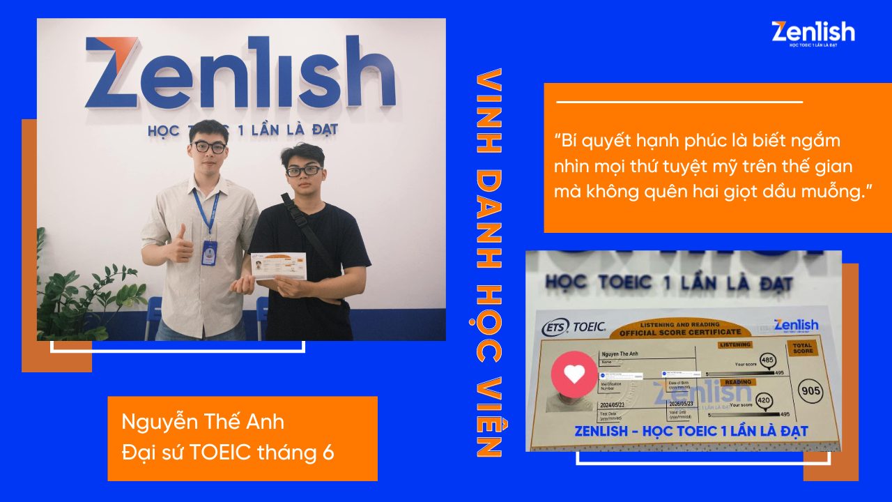 Chỉ sau thời gian ngắn học tập tại Zenlish, Nguyễn Trung Vũ sinh viên Học viện Ngân hàng bứt phá giới hạn tự tin chinh phục 945 TOEIC 2 kỹ...