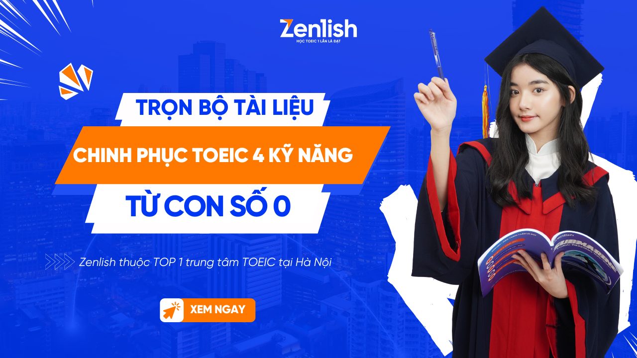 Tài liệu luyện thi TOEIC luôn là công cụ cần thiết để hỗ trợ cho các bạn ôn thi TOEIC đạt kết quả cao nhất. Trong bài viết này Zenlish...