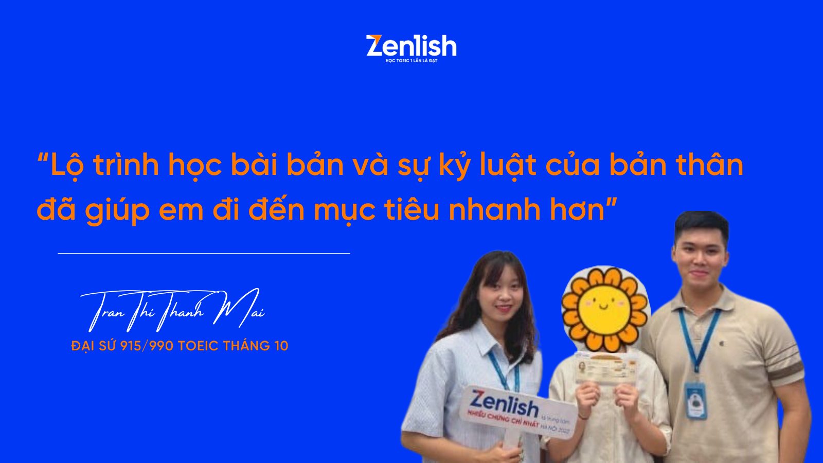 Xuất phát điểm với nền tảng tiếng Anh gần như bằng không, Trần Thị Thanh Mai – nhân viên văn phòng – đã xuất sắc đạt 915/990 điểm TOEIC chỉ sau 6 tháng học tập. Đằng sau thành tích ấn tượng này là sự kiên trì và kỷ luật mạnh mẽ.