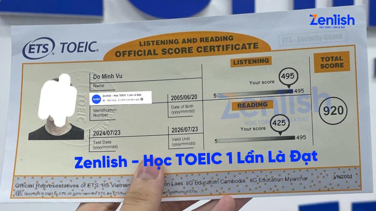 Thành tích 920/990 điểm TOEIC của Vũ là minh chứng cho sự kết hợp hiệu quả giữa nỗ lực cá nhân và chất lượng đào tạo của Zenlish. Từ một sinh viên có điểm yếu về ngữ pháp và từ vựng, Vũ đã vươn lên trở thành một trong những học viên xuất sắc nhất, chinh phục được một trong những chứng chỉ tiếng Anh quan trọng nhất hiện nay.