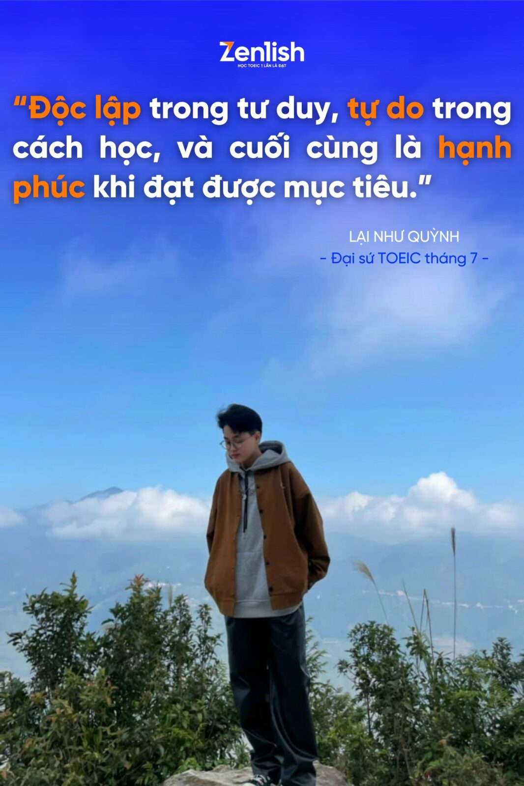 Có lẽ đó chính là bài học lớn nhất từ câu chuyện của Quỳnh: Hãy học với cả trái tim và khối óc. Và hãy nhớ rằng, mục tiêu cuối cùng không chỉ là một con số TOEIC, mà là sự “Độc lập – Tự do – Hạnh phúc” trong chính cuộc đời bạn.