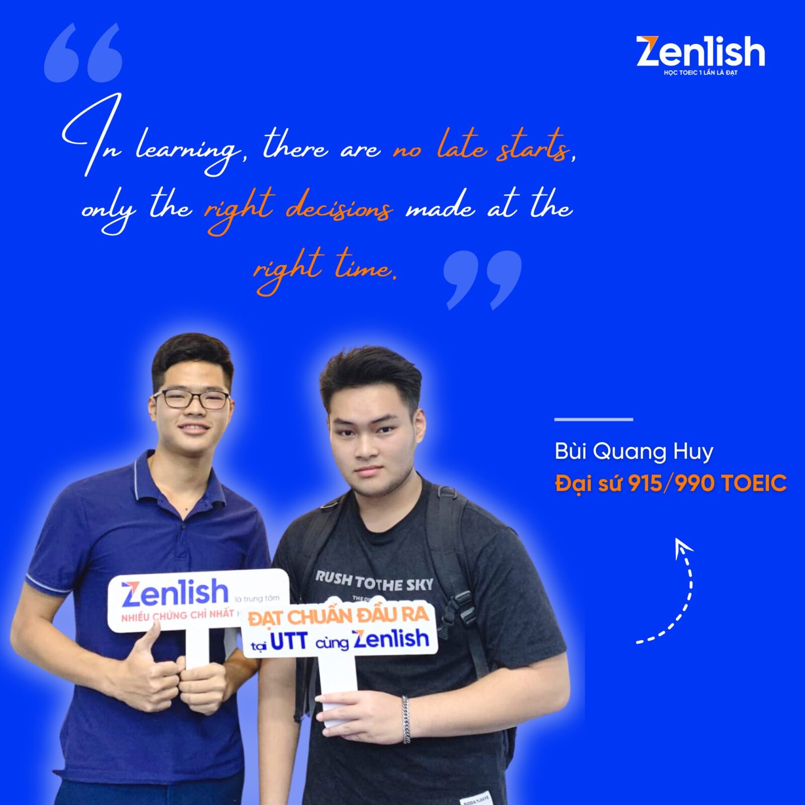 Câu chuyện của Bùi Quang Huy là một nguồn cảm hứng cho nhiều sinh viên đang băn khoăn về việc có nên quay lại con đường học tiếng Anh hay không. Chỉ cần bạn có quyết tâm, kết hợp phương pháp học tập của Zenlish, việc lấy lại và nâng cao trình độ tiếng Anh là hoàn toàn khả thi.