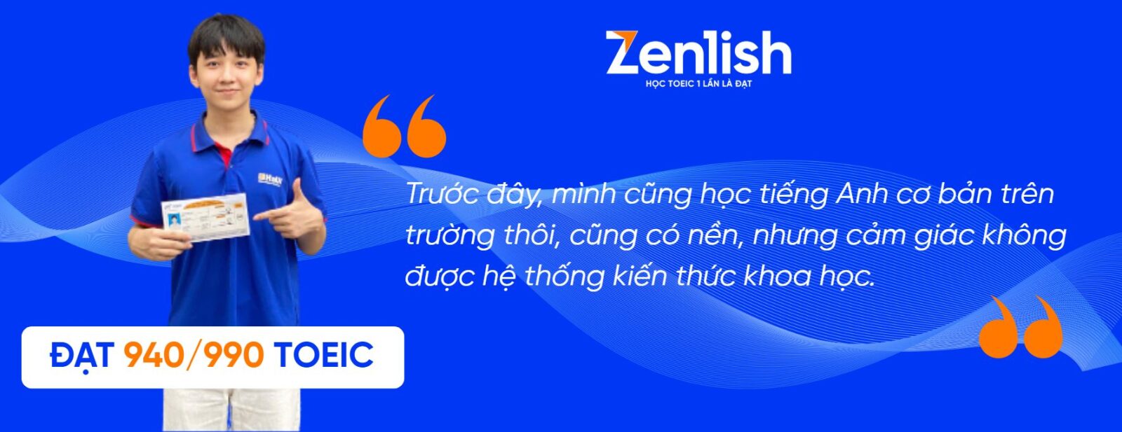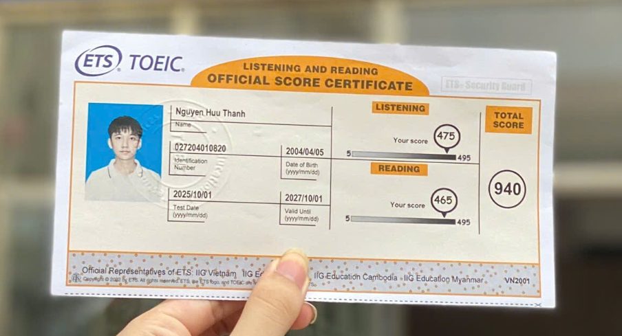 “Chỉ luyện đề có lên được 940 TOEIC không?” Đây là câu hỏi mà rất nhiều sinh viên kỹ thuật, đặc biệt là sinh viên HaUI, luôn băn khoăn khi bắt đầu ôn luyện TOEIC. Nguyễn Hữu Thanh – sinh viên ngành kỹ thuật Đại học Công nghiệp Hà Nội – đã trả lời câu hỏi đó bằng chính kết quả của mình: 940 TOEIC. Cùng Zenlish khám phá xem phương pháp ôn luyện TOEIC của Hữu Thanh như thế nào nhé!