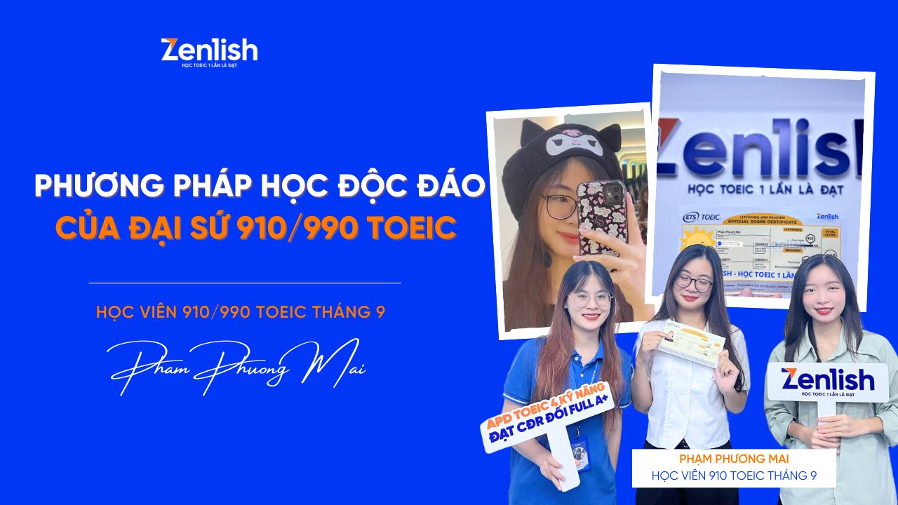 Với sự nỗ lực không ngừng và phương pháp học tập đúng đắn, Mai đã đạt được điểm số TOEIC ấn tượng 910/990. Thành công của Mai không chỉ là niềm tự hào của bản thân cô mà còn là minh chứng cho chất lượng đào tạo của Zenlish.
